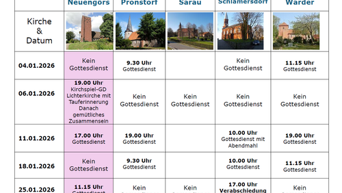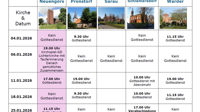 Gottesdienstplan aller Kirchengemeinden im Pfarrsprengel "Kirche im Traveland" zum Herunterladen und Ausdrucken