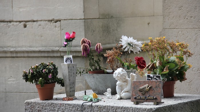Blumenschmuck, Steine, etc. legen Sie deshalb bitte nur auf den dafür vorgesehenen Flächen ab und nicht auf den Rasen bei der Stele, auf die bepflanzte Grabstelle oder auf die Bronzedeckel beim Magnoliengrab.