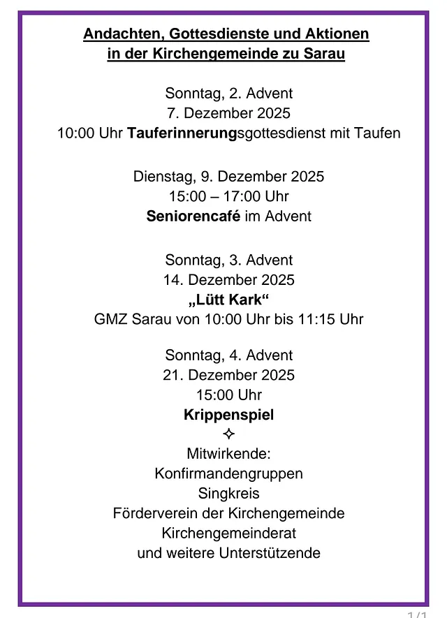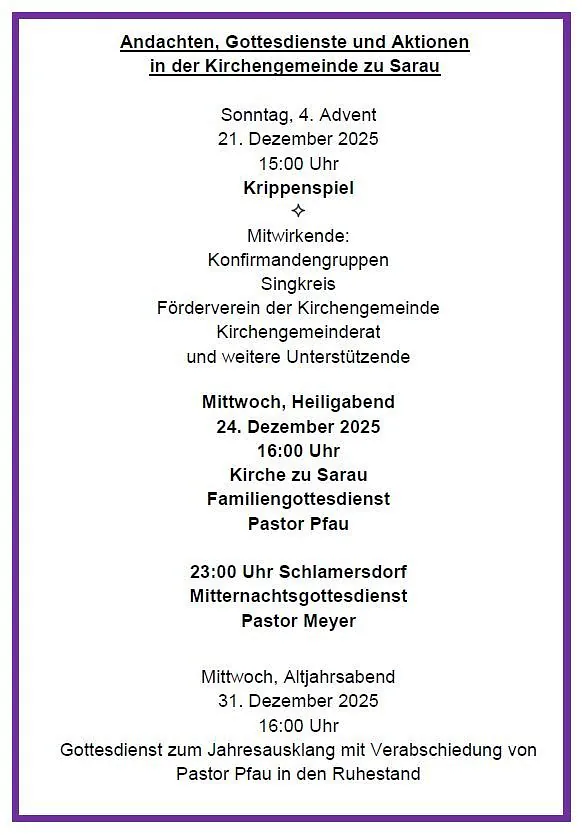 Neuigkeiten der Kirchengemeinde Sarau